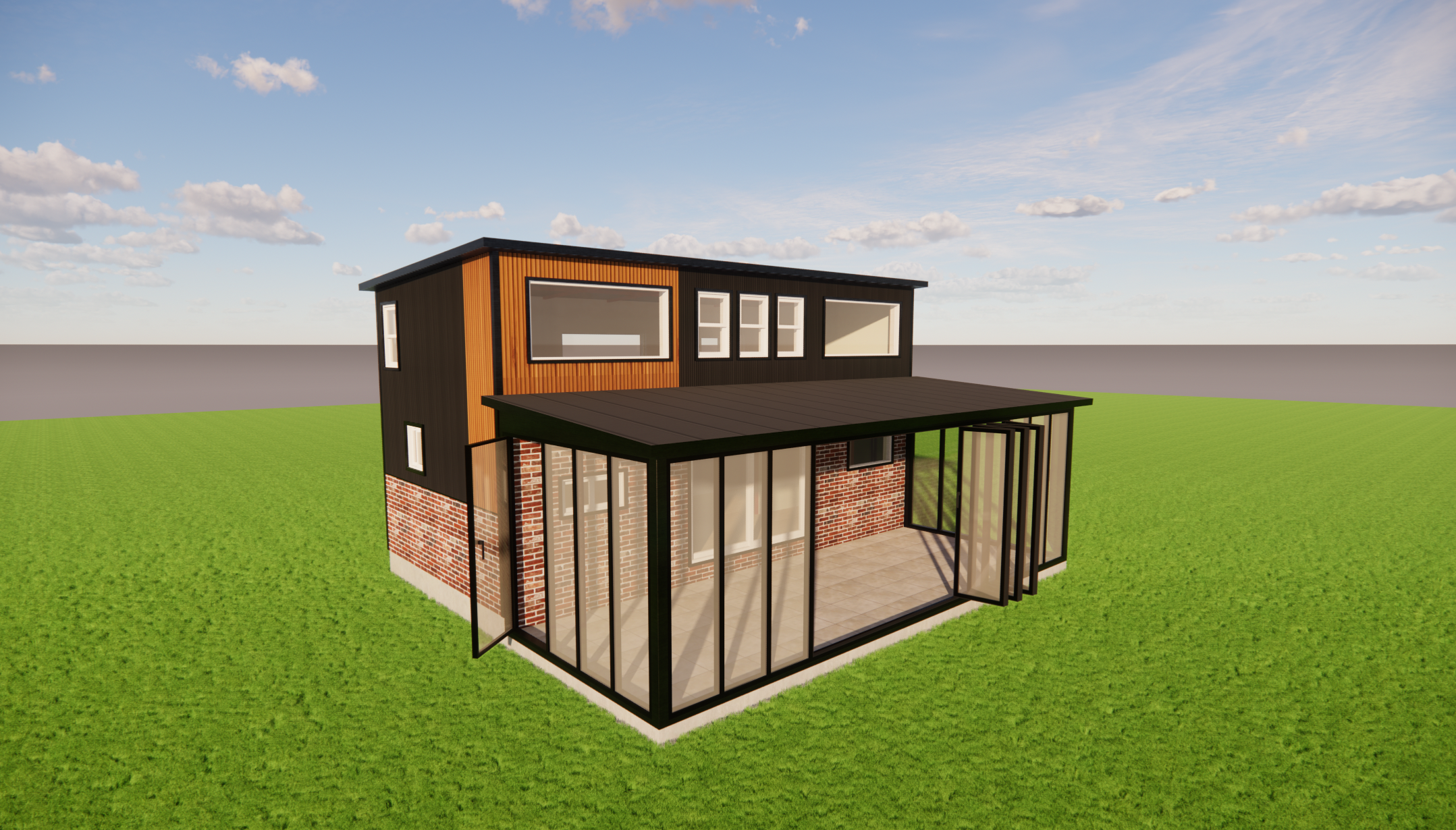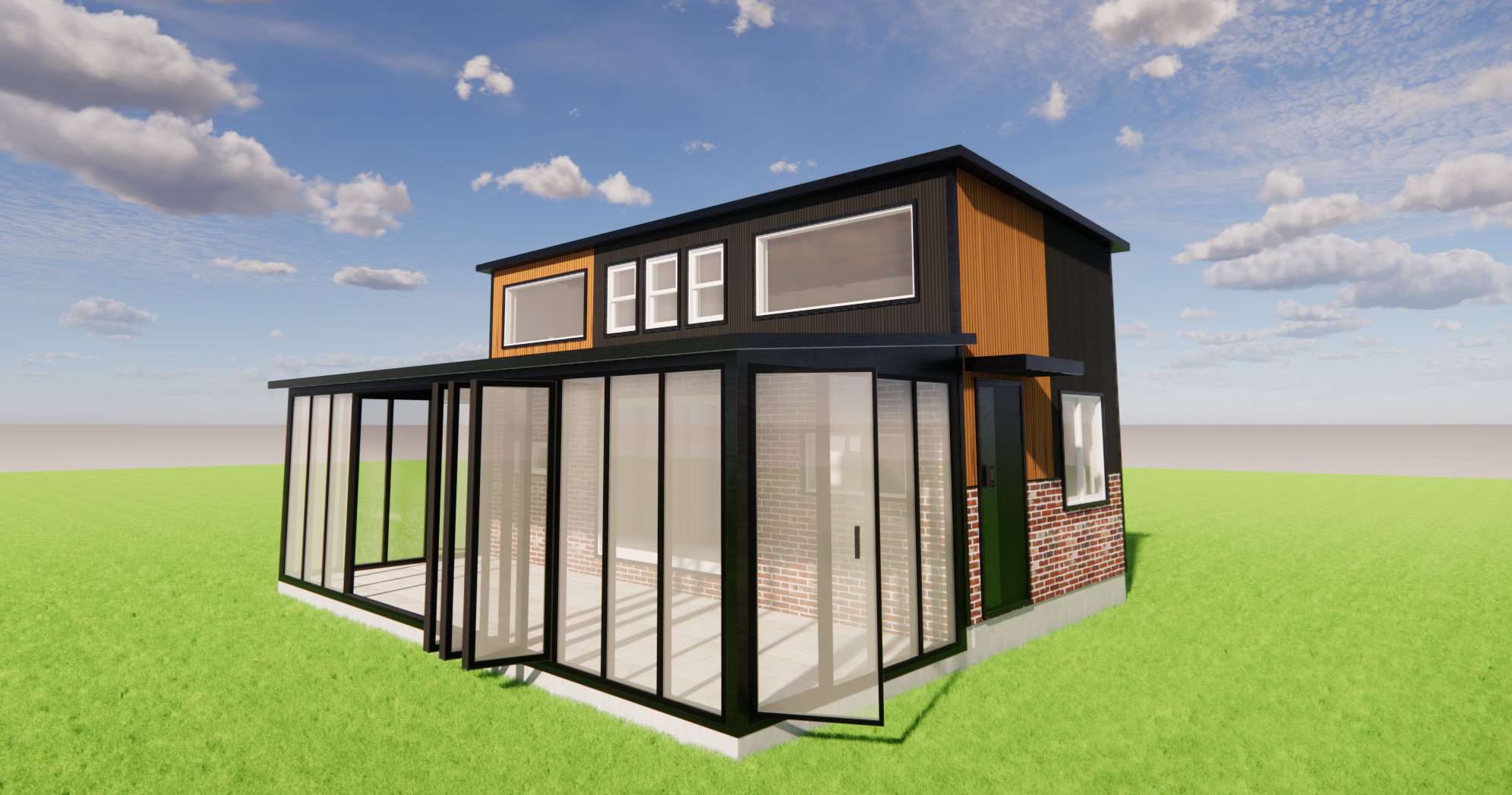 두 번째는 유리온실과 폴딩도어설치